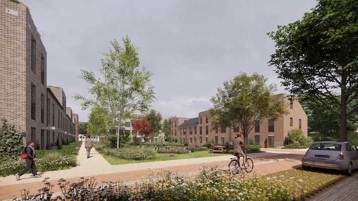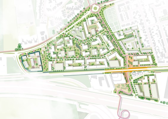 Het versteende plangebied transformeert de komende jaren stapsgewijs in een organisch proces tot een levendige, inclusieve en groene wijk met circa 1.250 woningen, voorzieningen, werkfuncties en veel ruimte voor ontmoeting.