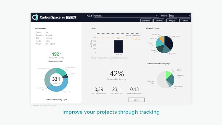 -uitstoot van al zijn projecten vergelijkt en de voortgang richting de klimaatdoelen van 2030 in real-time bijhoudt. Dankzij de koppeling met deze veel gebruikte analysetool kunnen ook andere organisaties eigen dashboards ontwikkelen die passen bij hun specifieke wensen, meldt MVRDV.