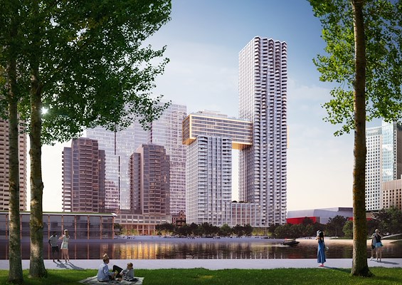 Wooncomplex in zilver en goud voor Rotterdamse Wilhelminapier