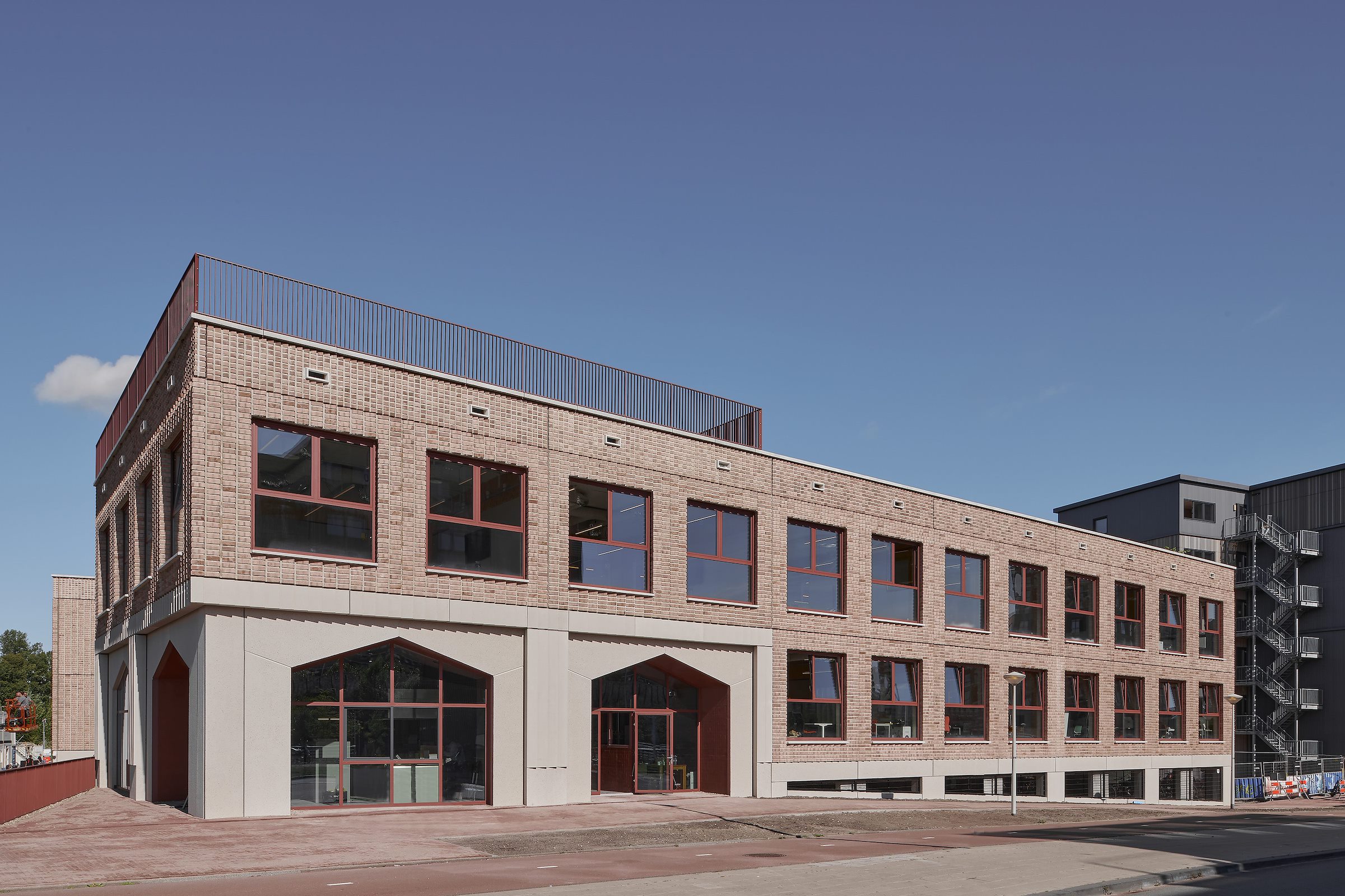 Hoksbergen bedacht de aula, naast ruimtelijk entree, als een schakelpunt en verbindingsruimte van twee ‘weglopende’ vleugels waarin lesruimtes (die hier coachgroepen heten) op twee niveaus langs lichtstraten zijn gesitueerd. Aan de aula grenzen, naast een keuken (die tevens maker space is) en een werkplek voor de conciërge, in de oksel van de twee vleugels ook de liftkolom en vijf maker spaces: tech-lab, media-lab, stilteruimte, muziekstudio en atelier. Alle voorzien van glazen binnengevels waardoor er een ongehinderd zicht is op de activiteiten in de aangrenzende ruimtes. Hier en daar is een open kast geplaatst waarin de resultaten uit maker space en atelier tentoongesteld kunnen worden. Vanuit de aula is aan de zuidzijde van het gebouw ook nog een tribunetrap naar het aangrenzende water bereikbaar. Scholieren die hun fiets in de stalling onder het gebouw zetten komen eveneens via de aula de school binnen. Het is een detail, zo geeft Hoksbergen ruiterlijk toe, dat hij afkeek van het ontwerp van Ector Hoogstad voor het Hyperion Lyceum in Amsterdam-Noord.