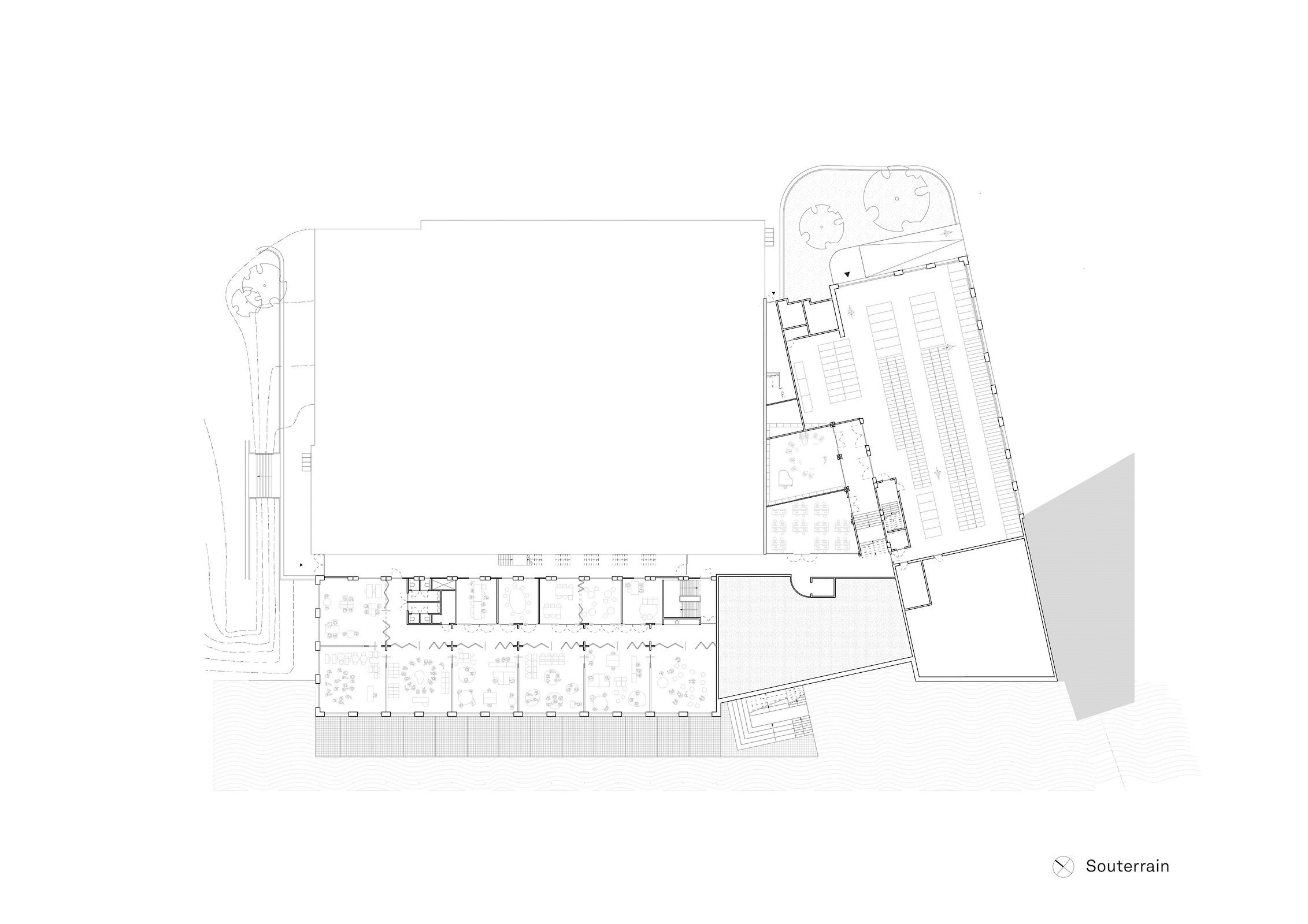 Met deze ruimtelijke vormgeving en indeling heeft Hoksbergen de ruimtelijke puzzel meer dan opgelost. De aula is de vanzelfsprekende en onvermijdelijke nucleus van school en ontwerp geworden. Leerlingen komen hier aan in de school, passeren de ruimte op weg naar hun coachruimtes, eten er hun lunch en verblijven er om te werken of te simpelweg te hangen. Er zijn woonkamers die minder bieden.