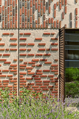 Een plek waar kankerpatiënten troost kunnen vinden, weer tot zichzelf kunnen komen, en het mooie in het leven kunnen ervaren, op nog geen tien meter afstand van het gebouw waar ze bestraald worden. Hoe doe je dat? Door de gevel richting het Protontherapiecentrum van het Universitair Medisch Centrum Groningen behoorlijk gesloten te houden, daar met luiken het daglicht en doorzicht te regelen, en juist aan de andere kant, naar de singel, het gebouw te openen met een ruim vlonderterras.