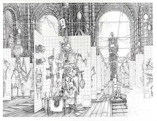Speciaal voor de tentoonstelling Brutus maakte Kingma nieuwe kleinere tekeningen die inzoomen op thema's uit dit project en actuele spanningen in de samenleving tonen, met aandacht voor onder meer zorginstellingen en preppers. “Huisvesting is een van de belangrijkste bronnen van maatschappelijk onbehagen”, vertelt Kingma over het werk De machinerie van de volkshuisvesting. “Er worden te weinig huizen gebouwd en als ze er wel komen dan zijn ze te duur, staan ze op de verkeerde plek, zijn ze niet toekomstbestendig of sluiten ze niet aan op de vraag.”