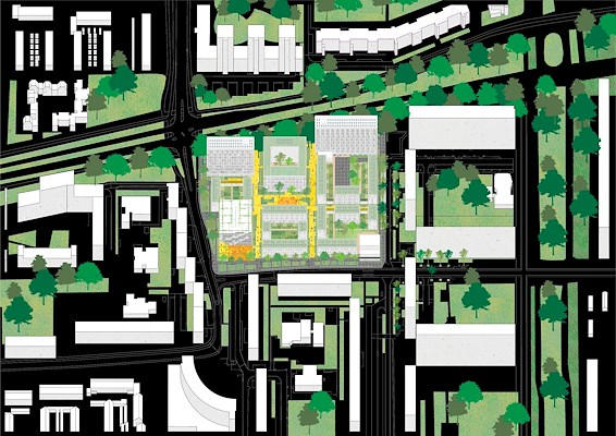 Op de plek van de voormalige flat verrijst binnenkort een groene, autovrije buurt. Het stedenbouwkundig plan legt verbinding met de wijk en wil tegelijkertijd toch ook stelling nemen tegen de (restanten van de) naoorlogse stedenbouw van Overvecht. De plek wordt, volgens de ontwerpers, namelijk getransformeerd van een lege publieke ruimte met veel hardheid en onduidelijkheid naar een verdichte buurt waarin de publieke ruimte juist zacht en duidelijk gedefinieerd is. Autovrije woonstraten met Delftse stoepen zullen gaan aansluiten op het stedenbouwkundig weefsel van Overvecht. In het hart van het wijkje komt een centraal plein waarbij ook de oorspronkelijke speelvijver in ere wordt hersteld.