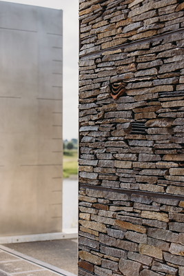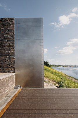 De poorten zijn opgetrokken uit riviersteen, met bij elke meter boven NAP een horizontale band. Boven de streep van +21,66 meter zijn nestkasten voor vogels en vleermuizen ingemetseld, die dus ook bij hoogwater veilig blijven. Door ook de beweegbare elementen van de kering zichtbaar te houden, wilden de architecten het bewustzijn van het water bij de gebruikers stimuleren.