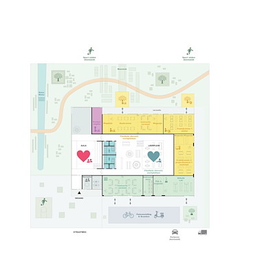 Aan de rand van het dorpscentrum van Zeist, in een door woningen omzoomd binnengebied, ontwerpt Space&Matter een nieuwe buitenschoolse opvang (BSO) en gymzaal.