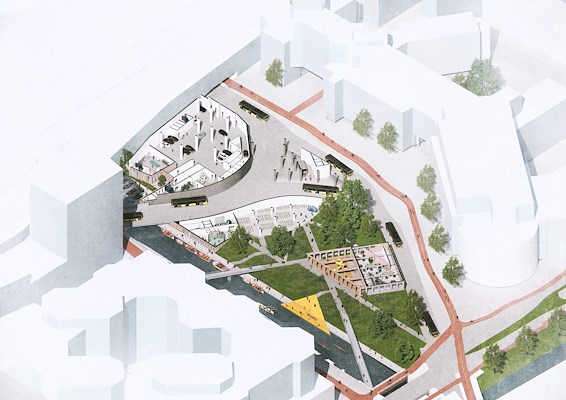 Op deze drukke plek in de stad, hoopt Studioninedots een moment van kalmte te kunnen introduceren. “Een nieuwe, zeer publieke bestemming waar buurtbewoners, pendelaars, toeristen en voorbijgangers een moment van rust kunnen ervaren. Of zoals wij het noemen, het 'Oog van de Orkaan'. Ons plan verbindt de locatie opnieuw met de stad en geeft het naar ons idee een nieuwe betekenis als een plek voor gezond stedelijk leven.”