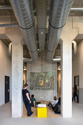 Het ontwerp reageert volgens de jury op de oorspronkelijke functionalistische architectuur. Het bestaande is gedemonteerd, geherinterpreteerd en gecomplementeerd met architectonische protheses. De architectuur omarmt het bestaande casco, inclusief beschadigingen en gebruikssporen. Het behoud van de constructie vormt de basis. Alle nieuwe elementen staan op of hangen aan de bestaande constructie en fundering, waardoor veel materiaal wordt bespaard. Ruwbouw is afbouw, dat is het uitgangspunt. Nieuwe circulaire materialen zoals eikenhouten puien en de bamboe vloer voegen een warme toon toe.