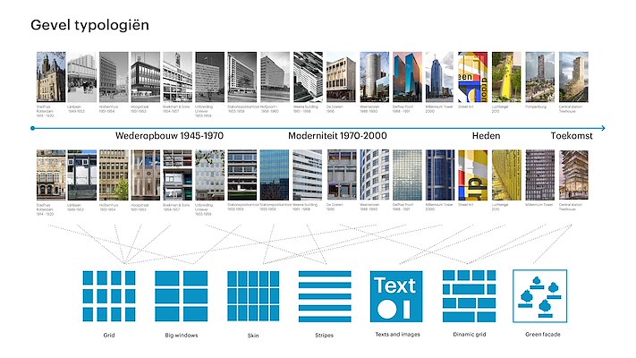 Geïnspireerd door de kleurrijke meubels van Donald Judd, heeft elk blok een raamindeling en kleur die verwijzen naar historische gebouwen in Rotterdam. Eén blok bevat uitkragende erkers, geïnspireerd op het Citrusveilinggebouw van architect Huig Maaskant in het westen van Rotterdam, gecombineerd met de felgele kleur van de nabijgelegen (en nu gedeeltelijk gesloopte) Luchtsingel. Een ander gedeelte heeft de zandsteenkleur van het Rotterdamse stadhuis met ramen die ‘010’ spellen in een achthoekige raamvorm die weer verwijst naar de gevel van Hofplein 19, honderd meter verderop.