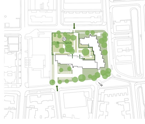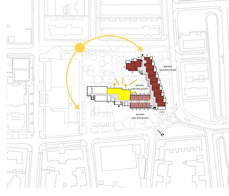 Het vernieuwde volume bestaat uit verspringende, zelfstandige eenheden (dertig zorgappartementen), elk met een eigen buitenruimte; tuinen op de begane grond en balkons op de verdiepingen. Op de begane grond zijn bijzondere functies toegevoegd, zoals een nieuwe entree, een parkeerruimte voor scootmobielen en een gemeenschappelijke huiskamer.