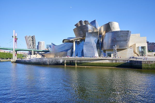 Het bouwwerk, dat wordt gekenmerkt door zijn schots en scheve vormen in titanium plaatwerk en glas, is Gehry’s beroemdste creatie. Men spreekt zelfs van het ‘Bilbao-effect’; na de opening van dit museum beleefde de Baskische stad een ongekende opleving, met zeker een miljoen toeristen per jaar en honderden miljoenen aan extra inkomsten.