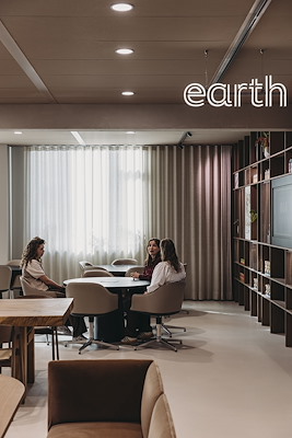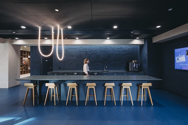 ontwierp het interieur, waarin de identiteit van het bedrijf werd versmolten met de architectuur van het gebouw. Het open en gevarieerde kantoorlandschap is ruim voorzien van groen.