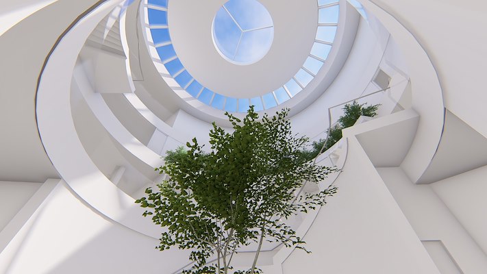 maakt het ontwerp voor de buitenruimte. Die zal gekenmerkt worden door een vijver, groenstructuren en waterdoorlatende verharding. Regenwater kan via infiltratiekratten rechtstreeks in de bodem zakken.In het landschapsontwerp is verder gekozen voor veel inheemse boom- en plantsoorten en de vijver heeft een natuurvriendelijke oever. Samen met de begroeide gevels en balkonranden draagt dit bij aan een versterking van de lokale biodiversiteit en een hoogwaardige, groene leefomgeving.