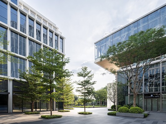 Bij de twee kantoorgebouwen in het zuidelijk en oostelijk deel van het terrein is het principe van verschuivende volumes en terrassen voortgezet. Bij deze twee gebouwen is de nauwe samenwerking met de klant, die vanaf de vroegste ontwerpfase betrokken was, goed van pas gekomen. Het gedeelde doel was om de architectonische expressie op een juiste manier af te stemmen op een flexibele en toekomstbestendige verhuurstrategie.