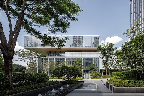 Via verticale openingen transparante circulatiezones dringt natuurlijk licht tot diep in het interieur door. Het moet verder bijdragen aan een gezonde en uitnodigende werkomgeving. De witte aluminium gevels met slanke verticale lamellen filteren verder het zonlicht en zorgen eveneens voor thermisch comfort in het hier heersende subtropische klimaat.