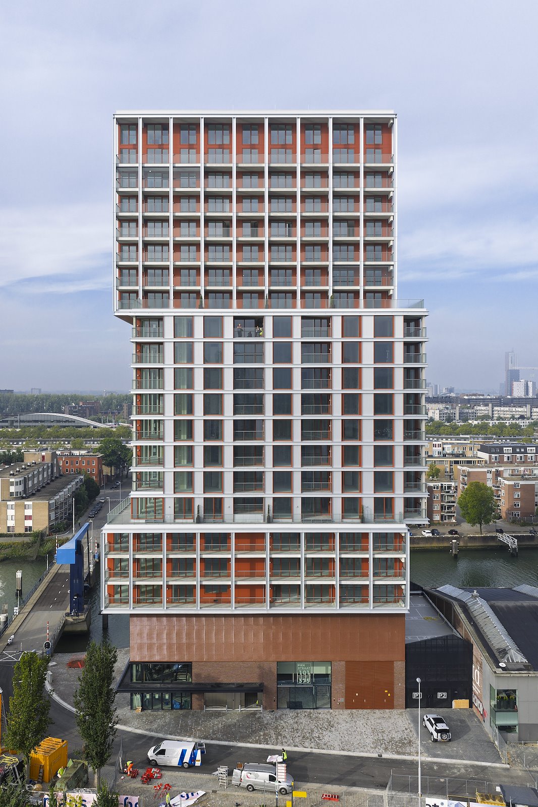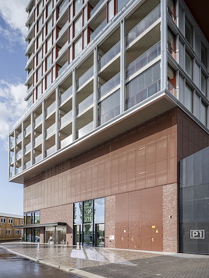 “We maken feitelijk een stapeling van gebouwen die er al zijn in de Piekstraat, waardoor we met de bestaande schaal een nieuwe toren creëren”, zegt Van Oort. “Het is een bijzondere toren, niet rank en slank, maar net als zijn omgeving een beetje grof. We pakken ook materialen op uit de omgeving, zoals staal en materiaal met metaalachtige, roestige kleuren. Zo krijg je een woongebouw dat nieuw en chic oogt, maar ook past bij de industriële en historische uitstraling van zijn omgeving.”