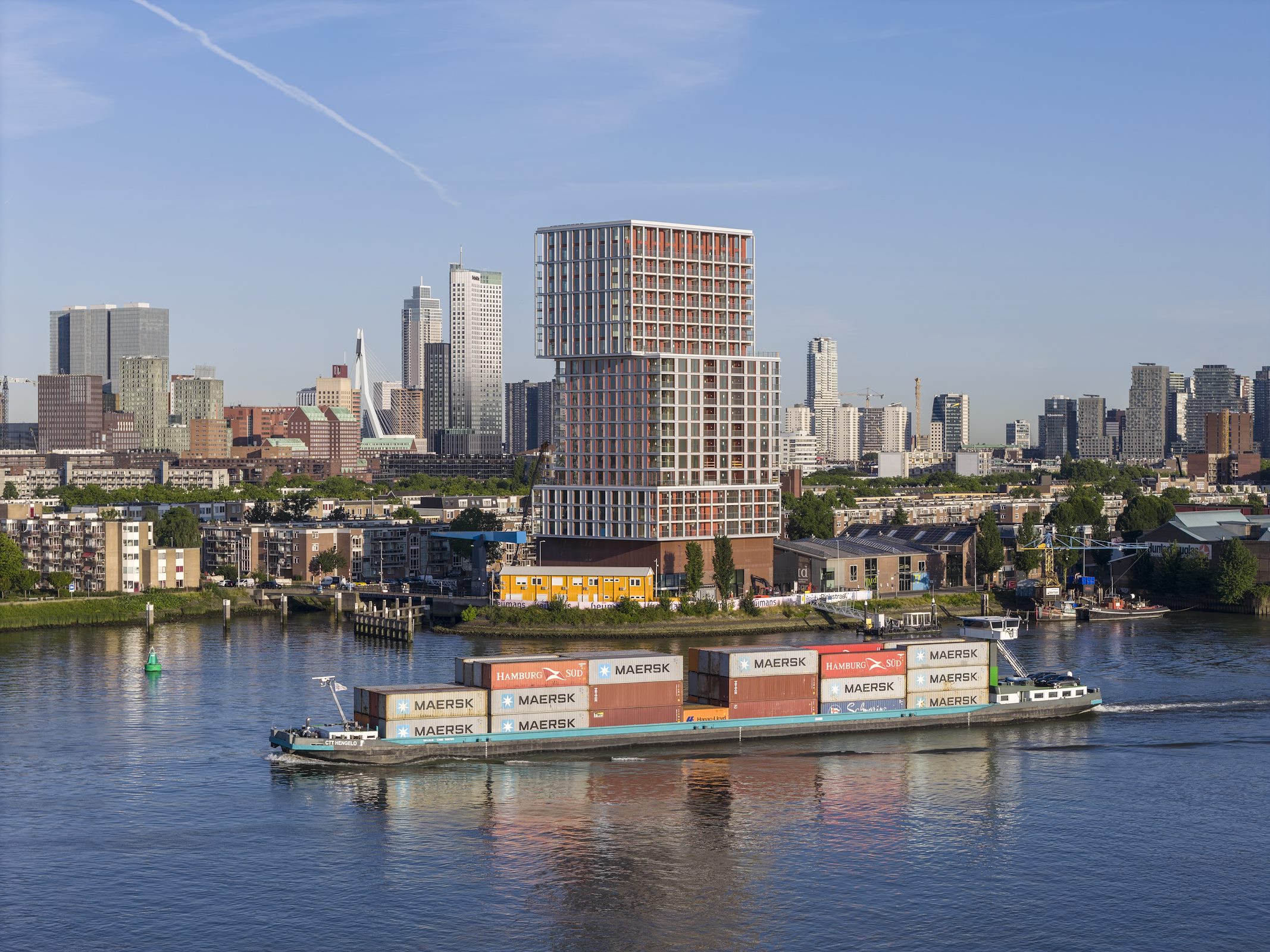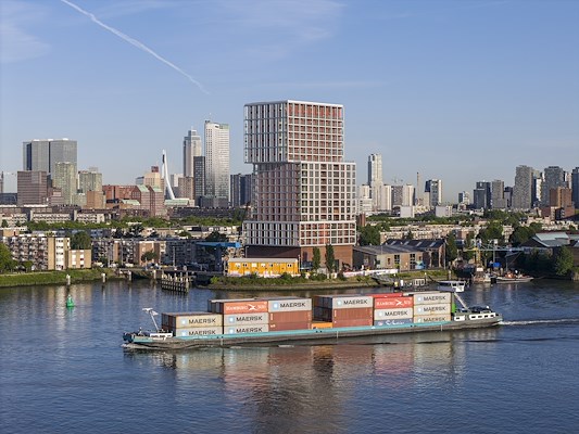 In een eerder interview met Architectenweb noemde Van Oort de toren in meerdere opzichten een goed startpunt voor de ontwikkeling van het gebied. “Op stadsniveau heeft de toren een fantastische ligging, aan de kromming van de Maas en met uitzicht over de rivier en de stad. Je kijkt uit over heel Kralingen en hebt straks ook zicht op Feyenoord City. Omdat het gebouw zelf ook een belangrijke eyecatcher wordt, mocht hij deze hoogte en omvang in volume krijgen.”