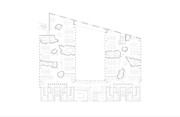 De kantoorvloeren zijn ontworpen om de nieuwe manier van werken te faciliteren, met de green lane als actieve ontmoetingsplek en verbindend element. De kantoorvleugels zelf worden richting het einde steeds rustiger, om geconcentreerd werken mogelijk te maken. Er zijn geen vaste kantoren meer, zelfs niet voor de directie; alle werkplekken zijn flexibel te gebruiken.
