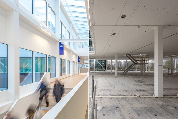 Na ruim vier jaar is het dan zover: het gebouw staat casco-opgeleverd op zijn nieuwe plek op de campus van de Universiteit Twente. Maar liefst 95 procent van de oorspronkelijke materialen is hergebruikt. De overgebleven vijf procent betrof de ophoudcellen en een loopbrug. De speciaal ontwikkelde, losmaakbare kanaalplaatvloeren bleken bij de remontage in Enschede uitstekend te voldoen, meldt cepezed.
