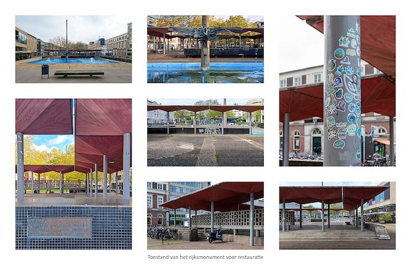 Het typische wederopbouwplein in het centrum van Arnhem was hard aan vernieuwing toe. Het plein krijgt een nieuwe ondergrond, er komt meer groen en de verlichting is verbeterd. Een belangrijk onderdeel van het plan was om de kenmerkende AKU-fontein, het bijbehorend bassin en de achtergelegen pergola weer prominenter in het zicht te brengen.