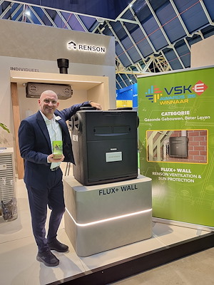 Op de vakbeurs VSK+E in Utrecht heeft de Flux+ Wall van Renson de VSK+E Award gewonnen in de categorie ‘Gezonde gebouwen, beter leven’. De jury noemde vooral de montageflexibiliteit(aan de wand of het plafond en met aansluitingen links of rechts op dezelfde unit) als een grote troef.