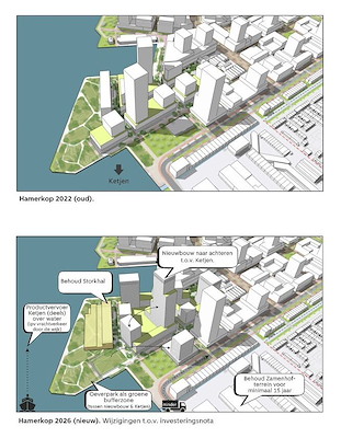 Wel is het stedenbouwkundig plan aangepast ten opzichte van de eerste versie uit 2022. In plaats van losse bebouwing op verschillende kavels komen er twee gesloten bouwblokken met groene daktuinen. Ook wordt de nieuwbouw iets naar achteren geplaatst ten opzichte van de fabriek van Ketjen. De verhouding tussen het type woningen is aangepast naar dertig procent sociale huur, dertig procent middeldure huur en veertig procent vrije sector.