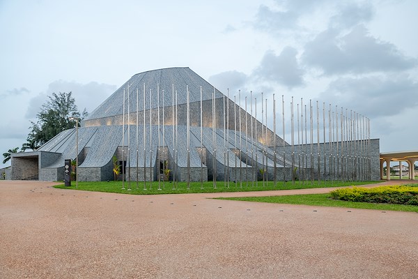 Het recent opgeleverde, omvangrijke conferentieoord in Benin, ontworpen door