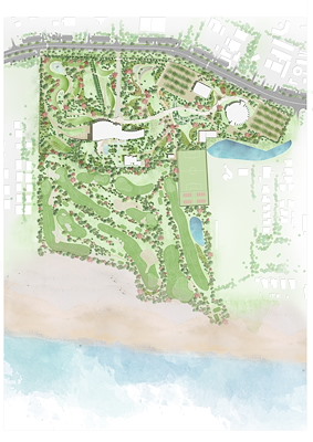 maakte het landschapsontwerp. Verder zijn op het terrein een zwembad, sauna’s, fitnessruimtes, golfpark en tennisbanen te vinden.