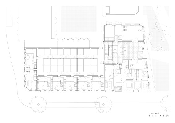 Het gebouw is voorzien van een dubbelhoge entreehal, waaraan direct zichtbaar de verschillende voorzieningen en stallingruimten liggen. Een insteekvloer leent zich voor gemeenschappelijk gebruik en activiteiten. Voor de entree ligt een groen pleintje met bankjes aan het water, terwijl tussen de bomen een gemeenschappelijk dakterras met uitzicht voor de bewoners is gerealiseerd.