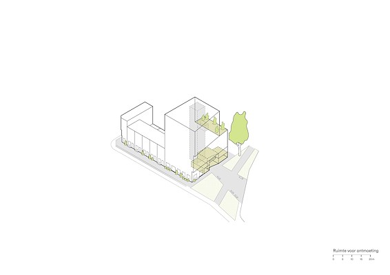 gebouw bestaat uit 36 sociale huurwoningen. Het in metselwerk opgetrokken gebouw is geleed in drie bouwdelen, die plek bieden aan verschillende typen woningen.
