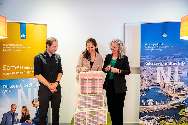 Eind februari hebben het Rijksvastgoedbedrijf en bouwbedrijf BAM een contract getekend voor de realisatie van een houten kantoorgebouw aan de Juliana van Stolberglaan in Den Haag.
