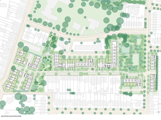 De woningen worden verdeeld over drie woonhoven met een gevarieerd aanbod aan woningtypen, melden de ontwerpers. Twee bestaande woningen langs het Kasteelplein blijven behouden en worden geĆÆntegreerd in de nieuwe ontwikkeling. Het winnende plan bouwt voort op het masterplan uit 2020. De ruimtelijke hoofdstructuur, bestaande uit drie compacte woonhoven en twee groene corridors, blijft behouden en wordt opnieuw geĆÆnterpreteerd.