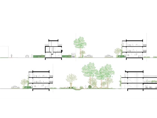 De twee groene corridors fungeren als ecologische en sociale dragers binnen het plan. Ze zijn ontworpen als volwaardige parklandschappen, met ruimte voor biodiversiteit, beweging en ontmoeting, en vormen tegelijkertijd natuurlijke buffers tussen de woonclusters.