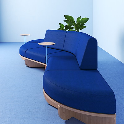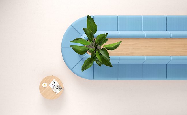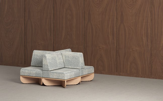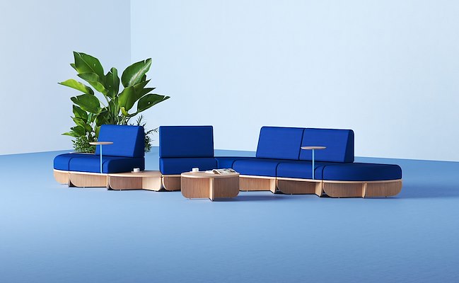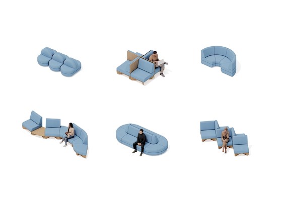 het meubelsysteem Macaron. Het systeem bestaat uit een set modules, die verschillende opstellingen en oriëntaties mogelijk maken. Gebruikers kunnen hiermee als het ware ‘scènes’ creëren, passend bij de activiteit van dat moment: van beschutte plekken voor concentratie tot meer open opstellingen voor overleg en ontmoeting.