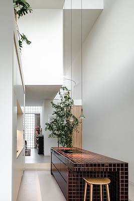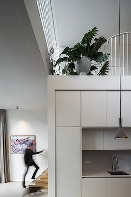 Bijzonder hoge woonkeuken als centrale leefruimte
