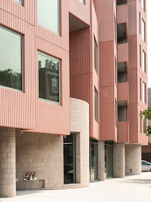 Voor de gevel koos SO-IL voor geprefabriceerde betonnen panelen van verschillende vormen, afmetingen en mate van afwerking. Deze diversiteit moet het gebouw een robuuste, stedelijke uitstraling gaan verlenen waarmee het als architectonisch element moet gaan opvallen te midden van bestaande meergezinswoningen in New York, zo hopen de architect en ontwikkelaar.