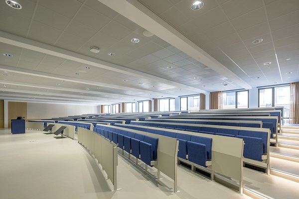 Met aandacht voor de dynamiek van 4.000 dagelijkse gebruikers en de rust die onderwijs en onderzoek vereisen, verbindt het ontwerp via een herkenbare route een centraal ontmoetingshart, grote en kleine collegezalen en lokalen, zelfstudieplekken, kantoren en een studenten- en sportcentrum op intuïtieve wijze met elkaar, laat Sweco Architects weten.