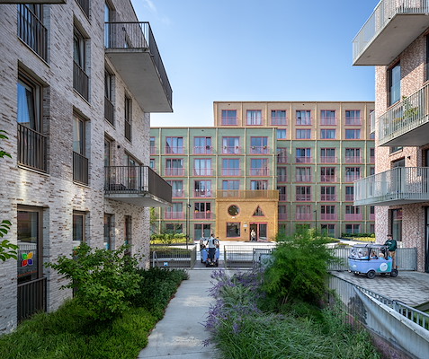 door Monadnock. Daarnaast ontwierpen Zecc Architecten, EGM, INBO en Bybali een gebouw, die alle zijn opgetrokken in metselwerk, maar in kleur, volume-opbouw en detaillering van elkaar verschillen.