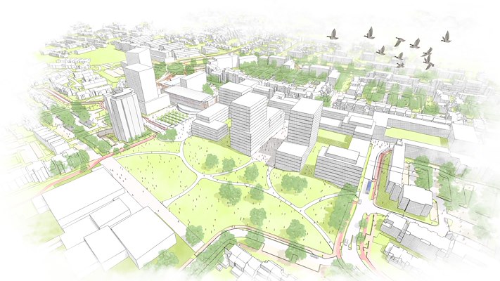 Vanuit die ambities zal het gebied moeten transformeren van een winkelcentrum naar hoogstedelijk, multifunctioneel centrum. In die nieuwe vorm zullen wonen, voorzieningen en groen moeten gaan samenkomen. Het plan voor een nieuw stadscentrum voorziet in de bouw van de genoemde woningen, alsmede circa 12.000 m² ruimte voor winkels, horeca en dienstverlening in de plint van de woongebouwen.