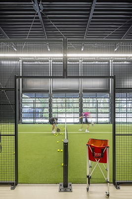 in gebruik genomen. Het volume vormt een uitbreiding van het bestaande sportcomplex van S&W Premium HealthClub. In plaats van een losstaand bijgebouw ontwierp het bureau de hal als een ‘eindvolume’, dat de kop van het sportcomplex afmaakt en een begrenzing vormt richting het groen.