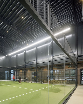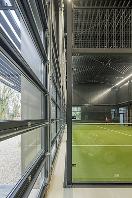 De hal is opgezet als een staalconstructie met een vrije overspanning over de speelvelden. De grote vrije hoogte die nodig is voor padel is zodanig ontworpen dat in de toekomst een tussenvloer kan worden toegevoegd. Het gebouw kan daardoor transformeren naar een tweelaags programma zonder sloop of uitbreiding van het volume. Deze flexibiliteit vergroot de levensduur van het gebouw en maakt het minder afhankelijk van veranderende sporttrends.