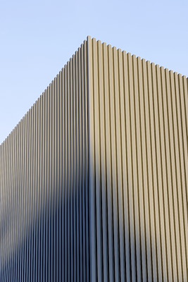 De benodigde vrije hoogte voor padel resulteert in een fors bouwvolume. Dit volume is vormgegeven als een helder, monolithisch element met een ingetogen materialisering. De gevel bestaat uit een verticaal blokprofiel met een subtiele metallic afwerking. De ritmiek in de gevel geeft schaal aan het grote volume en zorgt voor een rustig en samenhangend beeld.