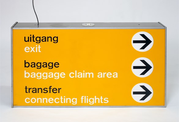 Benno Wissing en Kho Liang Ie, bewegwijzering voor Schiphol met de nieuwe pijl, 1967, prod. Omniscreen. Lichtbak Kho Liang Ie ism. Interdesign