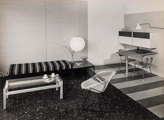 Kho Liang Ie, modelinterieur van een woning voor een werkende vrouw in opdracht van de Stichting Corversbos voor het gelijknamige flatgebouw aan de Schuttersweg 1- 83 in Hilversum, 1956