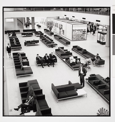 Kho Liang Ie, interieur Schiphol met door Kho hiervoor ontworpen zitsysteem 720 (prod. Artifort), 1967.