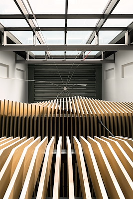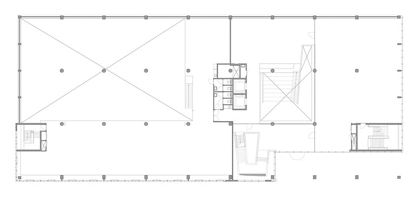 Een ruim collectief gebied vormt het hart van het kantoorgebouw. Door het gebouw van binnenuit te openen creëert Group A een atrium dat daglicht tot diep in het gebouw brengt en de entree accentueert. Entree en vide bevinden zich direct bij de teruggelegde gevel. Het entreegebied biedt ruimte voor programmering met een houten tribunetrap en koffie- en lunchbar. In het atrium verbindt een sculpturale trap de flexibel opgezette kantoorvloeren.