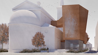 Om ruimte te creëren voor alle benodigde functies wordt naast de kerk een nieuw volume gerealiseerd.
