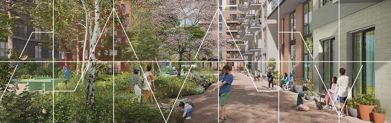 Het beeld bij de podcast toont een woonstraat in Merwede en is gemaakt door LOLA Landscape Architects.
