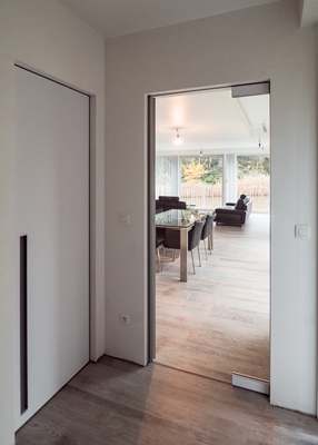 Glazen binnendeuren met gezuurd of gezandstraald glas bieden dan weer een optische afscherming, maar je behoudt toch zo’n 80% lichtinval tussen beide vertrekken. Anyway Doors biedt een ruim assortiment aan glazen deuren, steeds zonder vloerveren of vloerpompen zodat er vooraf geen voorzieningen in vloer of plafond getroffen dienen te worden!