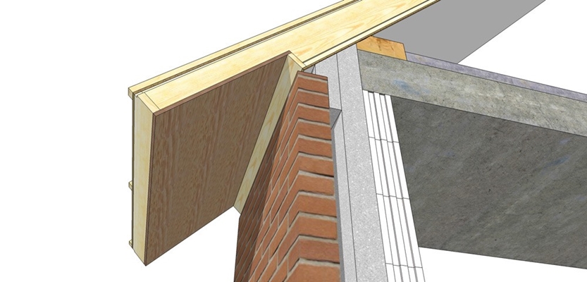 : Bij een kopgevel-muursparing worden de dakelementen over de lange zijde fabrieksmatig verjongd (onderzijde). Hierdoor kan het kopgevelelement gedeeltelijk over de gevelmuur worden gelegd. Koudebruggen worden zo voorkomen.